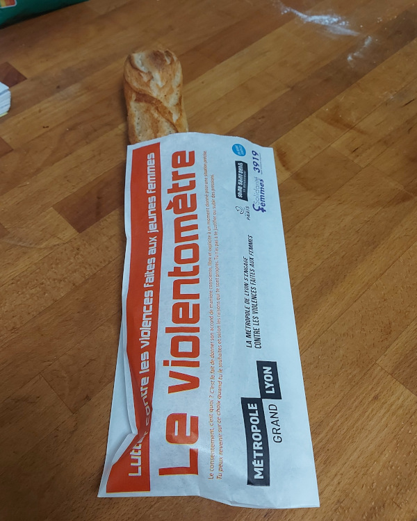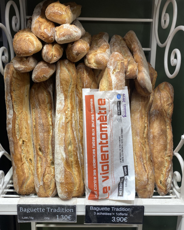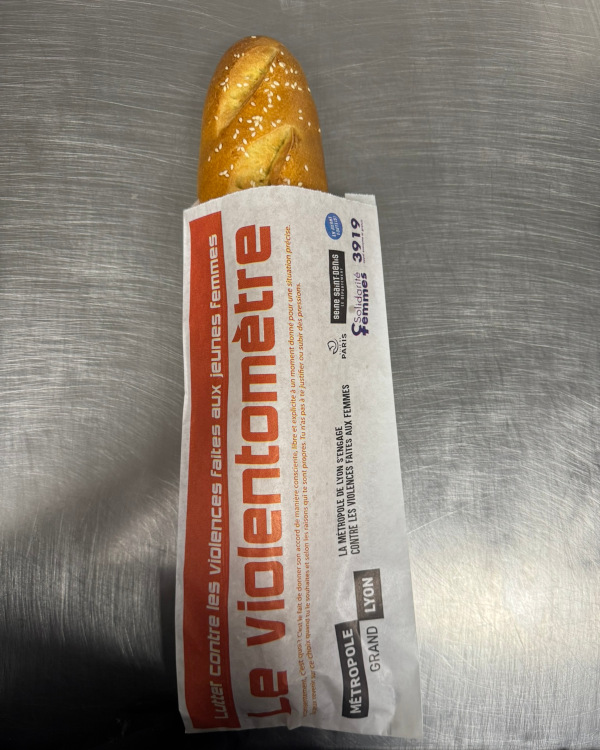 Imprimé sur les Epibag® destinés aux emballages boulangeries et pharmacies, le Violentomètre a permis de faire réfléchir, d’informer les victimes ( 3919 ) et de sensibiliser les auteurs de violences à la portée de leurs paroles.
